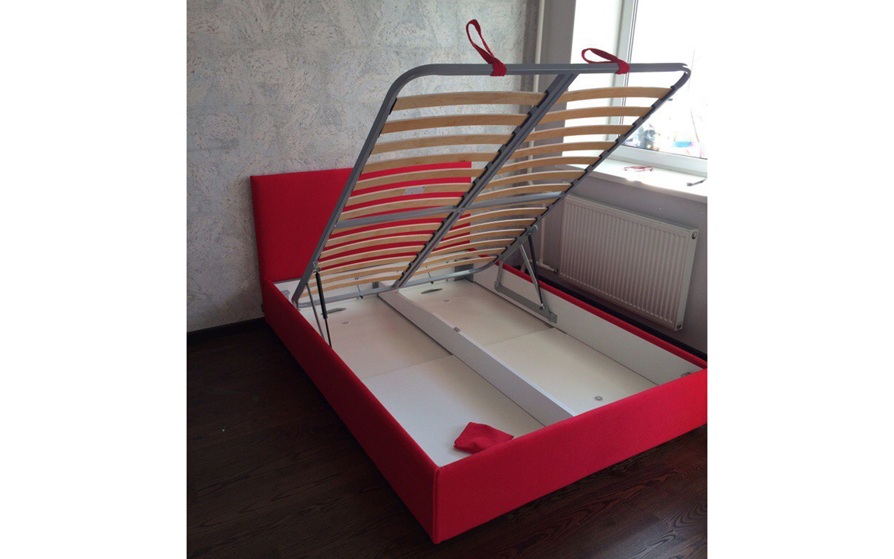 Кровать взяли в материале обивки - Рогожка, цвет "GARCIA ROSE", с подъемным механизмом, внутри ящик для белья. Матрас взяли фирмы Lonax. От кровати запаха практически нет, от матраса вообще нет. Все привезли во время, собрали быстро. Спасибо!